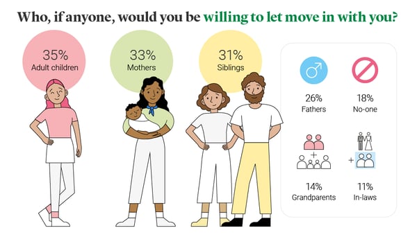 However, our survey found that most of us would be happy to live with our nearest and dearest. So who would we tolerate living in close quarters?