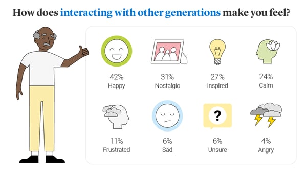 And across the country, these exchanges remind us of a shared past and a bright future. People in Sheffield were most likely to say that interacting with different age groups makes them ‘nostalgic’ (59%). Meanwhile, ‘inspired’ (40%) scored highest in Southampton.