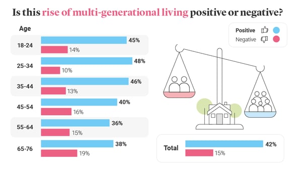 Additionally, men were slightly more likely to see multi-generational households as a positive (42%) versus women (41%).