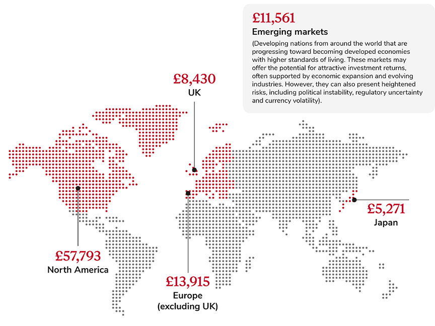 The information shown on this document is a representation of £100,000 investment. If the investment was £50,000, for example, the financial values would be halved, but the number of holdings and countries would remain the same.